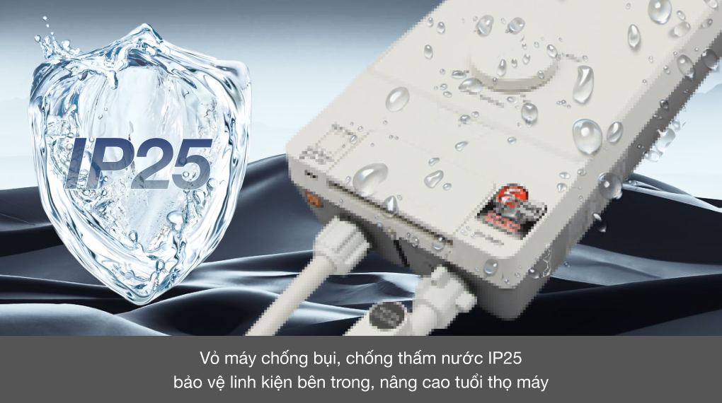 9 tính năng an toàn điện: Cầu dao ELCB, Cảm biến lưu lượng nước, Vỏ máy chống nước IP25, Kiểm soát nhiệt độ,...