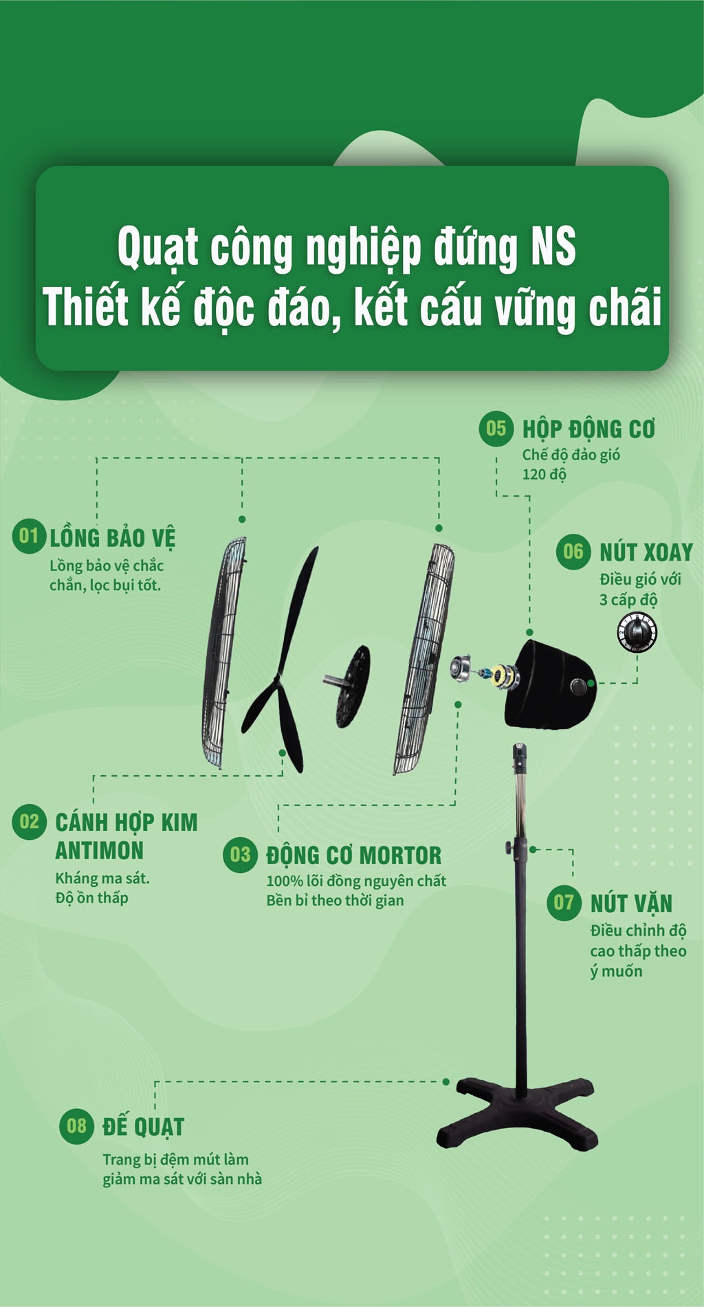 Đặc điểm sản phẩm Quạt đứng NS (3 cánh).