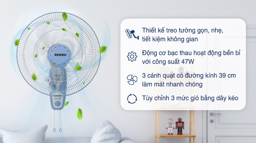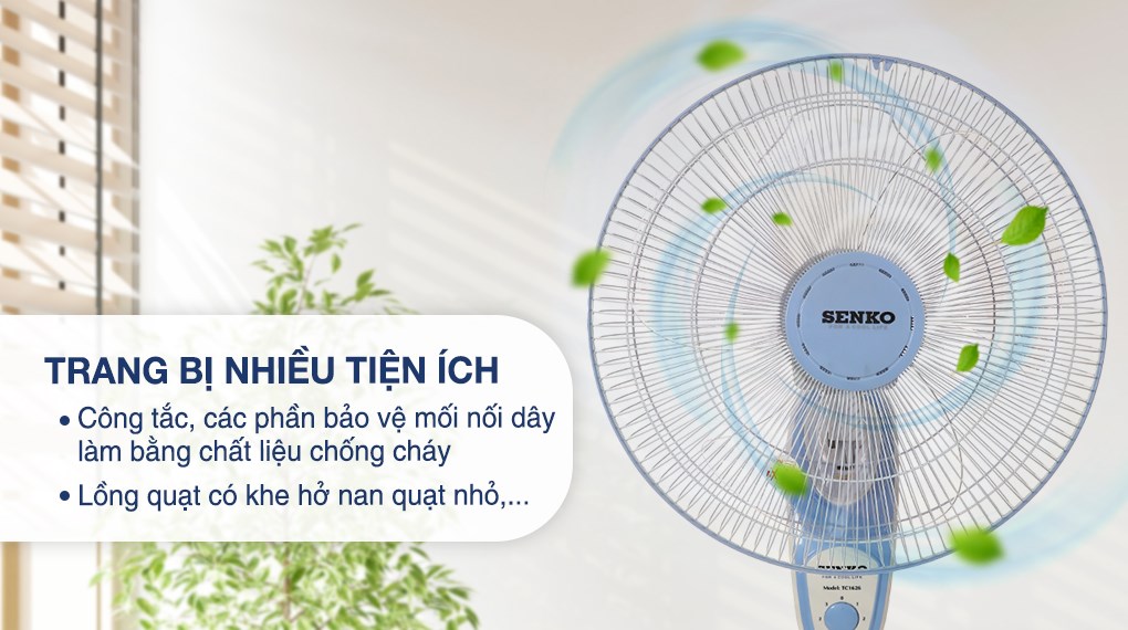 - Mã sản phẩm: Quạt treo tường Senko 3 cánh TC1626 47W