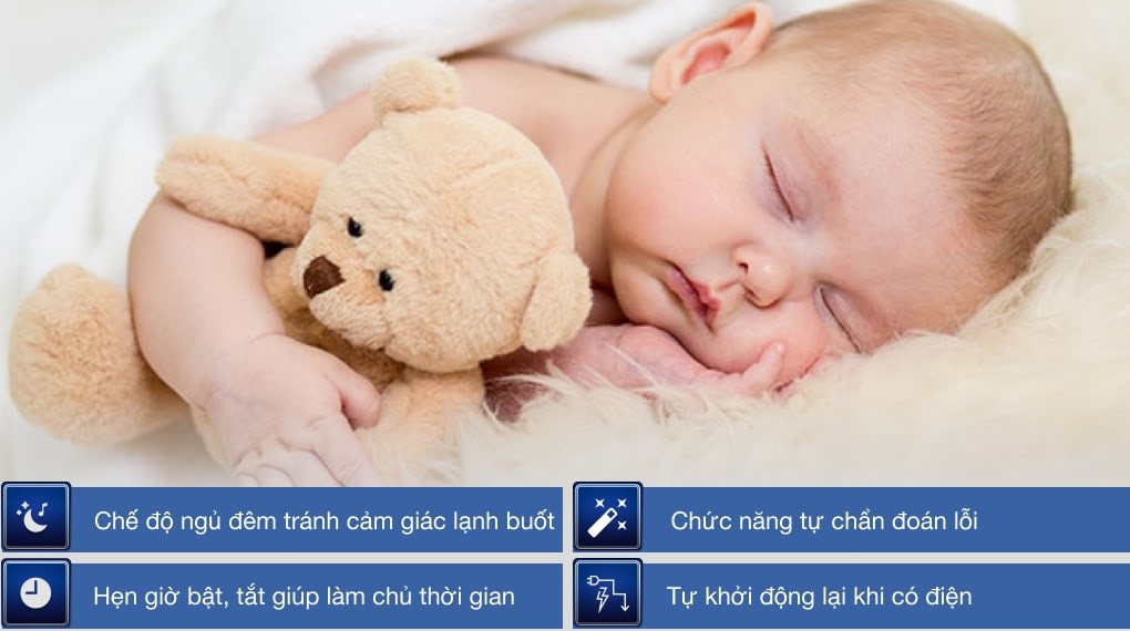 Chức năng tự chẩn đoán lỗiChức năng tự làm sạchChế độ ngủ đêm tránh buốtCông nghệ Gold-Fin chống ăn mònHẹn giờ bật tắt máyThổi gió dễ chịu (cho trẻ em, người già)Tự khởi động lại khi có điện -