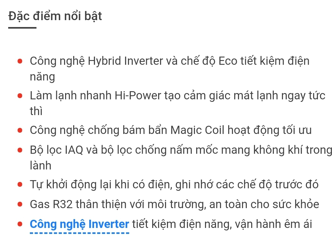 Bộ lọc chống nấm mốcCông nghệ chống bám bẩn Magic CoilCông nghệ tinh lọc không khí Ultra Fresh -