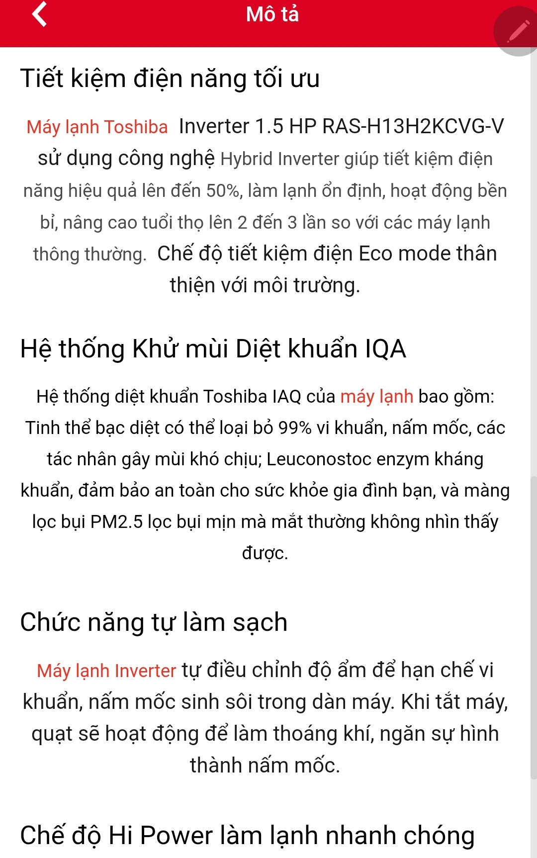 - Mã sản phẩm: Máy lạnh Toshiba 1.5 HP Inverter RAS-H13S4KCV2