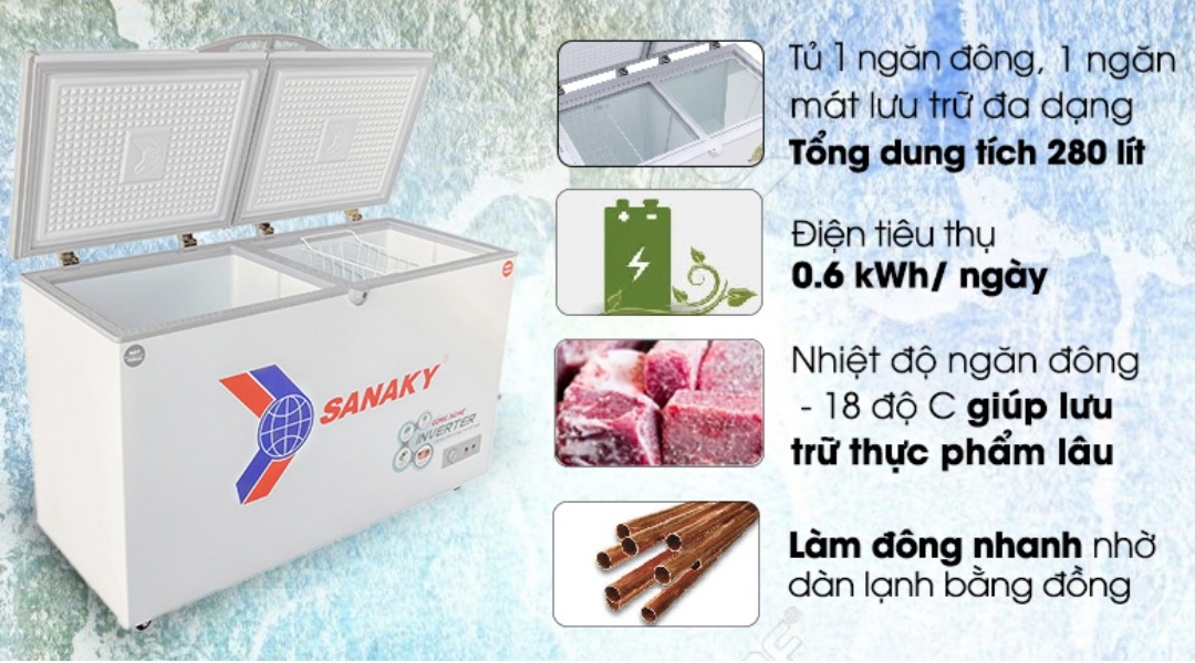 - Mã sản phẩm: TỦ ĐÔNG SANAKY 2 NGĂN VH 4099W3