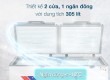 Chiếc tủ đông này sở hữu dung tích 305 lít, đáp ứng việc bảo quản và lưu trữ thực phẩm cho hộ gia đình, là sự lựa chọn lý tưởng cho những gia đình làm kinh doanh, buôn bán hải sản hoặc thực phẩm tươi sống.