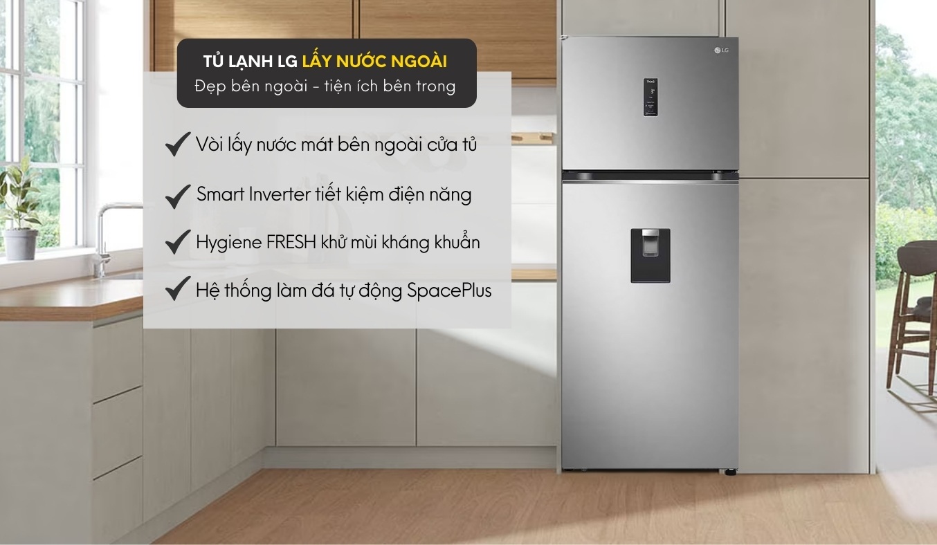 Không chỉ đẹp bên ngoài, tủ lạnh LG này còn tích hợp nhiều tiện ích hiện đại bên trong như: tính năng lấy nước bên ngoài tiện lợi, ngăn Fresh 0°C Zone trữ tươi thịt cá, hệ thống làm đá tự động SpacePlus, công nghệ Inverter tiết kiệm điện, tính năng kết nối Wifi điều khiển từ xa bằng Smartphone,... Và nhiều tiện ích khác đợi bạn mua về để tận hưởng trọn vẹn các tiện nghi.