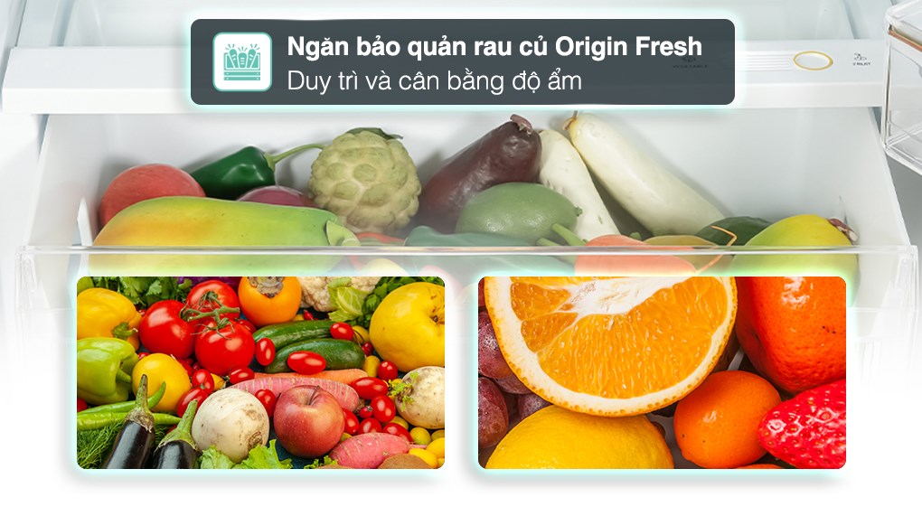 - Ngăn bảo quản rau củ Origin Fresh điều chỉnh độ ẩm tăng từ 60% ~ 80%, giúp giảm thiểu tình trạng héo hoặc úng trong thời gian bảo quản.