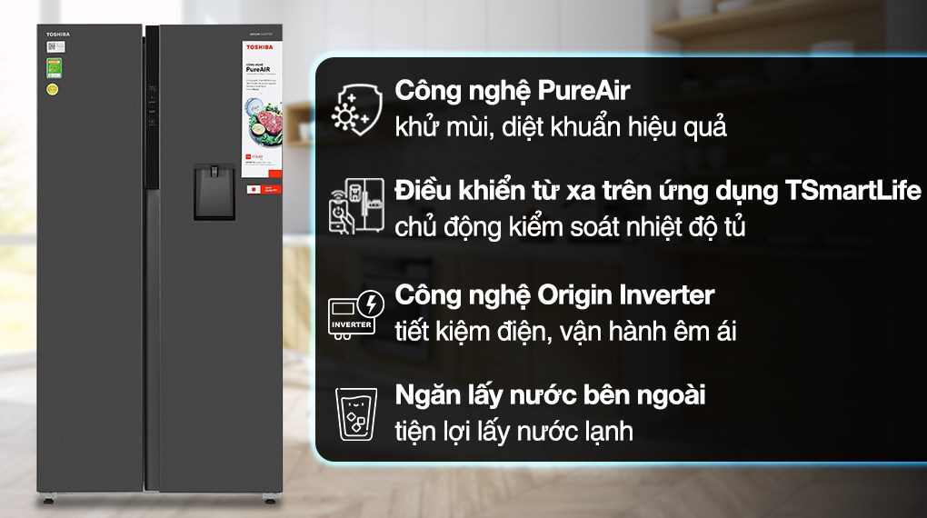 Tủ lạnh Toshiba Inverter 596 lít Side By Side GR-RS775WI-PMV(06)-MG