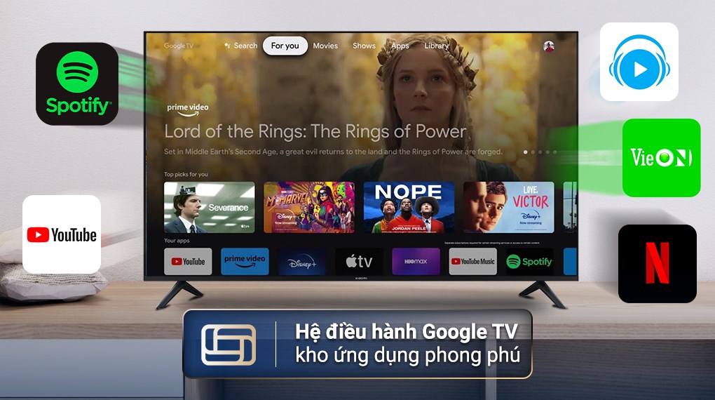 - Thư viện ứng dụng đồ sộ, có nhiều ứng dụng phổ biến: Netflix, Prime Video, YouTube,... đáp ứng nhu cầu giải trí của tất cả các thành viên trong gia đình bạn.