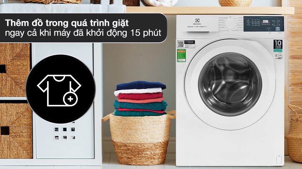 - Thêm đồ trong khi giặt: khi phát hiện có món đồ cần giặt mà để sót ở bên ngoài khi bạn đã khởi động chương trình, có thể chọn tính năng thêm đồ trong khi giặt để tạm dừng máy và bỏ thêm đồ vào trong ngay cả khi máy đã chạy đến 15 phút.